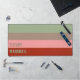 Erweitern Sie Ihren Arbeitsbereich mit der Schreibtischmatte für die Muster Grün, Braun, Rosa und Rot Streifen. Dieses elegante gestreifte Design in warmen und erdigen Tönen verleiht Ihrem Schreibtisch eine moderne und personalisierte Touch. Ideal für Zuhause-Büros, Studienzentren oder Workstations, bietet es eine glatte Oberfläche zum Schreiben und Bewegen der Maus bei gleichzeitiger Erhöhung der Arbeitsfläche. Passen Sie Ihren Namen an, um ein einzigartiges und berufliches Aussehen zu erhalten.