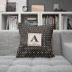 Dieses Halloween-Kissen mit niedlichem Weiß- und Orangenpolka-Muster mit schwarzer Hintergrundfarbe lässt sich für alle Fotos und Monogramme anpassen.