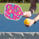 Mit diesem farbenfrohen, kühlen und leuchtenden Retro-Muster Pickleball Paddle heben Sie sich von der Masse ab. Ein lustiges Design im Stil der 80er Jahre mit Regenbogen, Lollipops, Rollerskates, Kassetten und alten Skool-Stereos in einer Mischung aus Magentafarben, Rosa, Gelb, Lila und Blau. Ein einzigartiges und trendiges Design, Sie werden wissen, welches Paddel Ihr Paddel ist!