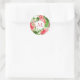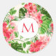 Schönes Blumenmuster aus rotem Hibiskus auf blassem Hintergrund. Hoch entwickelte und feminine Rundsicker mit Monogramm in weißer Rundform. Sie können den Text (Schriftart, Farbe, Größe und Position), die Größe des weißen runden Tags und die Größe des Designs ändern, indem Sie auf die Schaltfläche Anpassen klicken. Passende Gefälligkeitsbox, Gepäck, Gepäckanhänger und mehr...