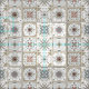 Stoff mit einer Reihe von neun (9) verschiedenen spanischen Stil Fliesen in neutralen Farben, Mosaik Muster.