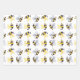 Weiße Wasserfarbenmuster mit gelben und grauen geflügelten, muffig gestreiften Bienen auf weißem, aquamarinem und lachsfarbenem Hintergrund.