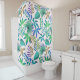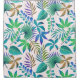 Die tropischen Blätter sind grün und blau, auf weißem Hintergrund.