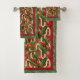 Das Blätter ist mit grünen tropischen Sets und roten Ingwer-Pflanze in einem geometrischen Elfenbeinmuster auf Kupferboden gestaltet. Das Handtuchhandtuch mit Palmenblättern ist ein perfekter Akzent für Ihre Wohngestaltung.