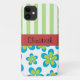 Muster von Blume, grünen Streifen, Ihr Name Case-Mate iPhone Hülle