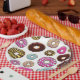 Muster von Donuts, farbenfrohe Donuts, Sprinklen Pappteller