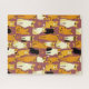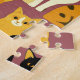 Puzzle in einem spielerischen Muster von stilisierten Katzen in warmen Farbtönen Ingwer, Creme, Schwarz und Braun auf karamellbraunem Hintergrund. Jede Katze hat ihren niedlichen Ausdruck und ihre Markierungen, mit kleinen Pfotendrucken, die überall verstreut sind.