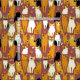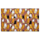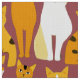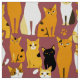 Stoffe in einem spielerischen Muster aus stilisierten Katzen in warmen Ingwer-, Creme-, Schwarz- und Brauntönen auf karamellbraunem Hintergrund. Jede Katze hat ihren niedlichen Ausdruck und ihre Markierungen, mit kleinen Pfotendrucken, die überall verstreut sind.