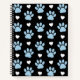 Muster von Paws, Hundeschäften, blauen Paws, weiße Notizbuch