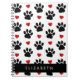 Muster von Paws, schwarzen Paws, roten Herzen, Ihr Notizblock