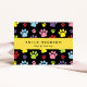 Niedliche, lustige und bezaubernde Visitenkarten mit bunten Pfoten. Modernes Design, perfekt für Hundetrainer, Hundegroßhändler, Hundeschuhler, Haustierer, Tierhändler und Tierärzte.