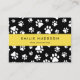 Niedliche, lustige und bezaubernde Visitenkarten mit weißen Pfoten auf schwarzem Hintergrund. Modernes Design, perfekt für Hundetrainer, Hundegroßhändler, Hundeschuhler, Haustierer, Tierhändler und Tierärzte.