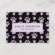 Niedliche, lustige und bezaubernde Visitenkarten mit lila und lila Pfoten. Modernes Design, perfekt für Hundetrainer, Hundegroßhändler, Hundeschuhler, Haustierer, Tierhändler und Tierärzte.