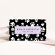 Niedliche, lustige und bezaubernde Visitenkarten mit weißen Pfoten auf schwarzem Hintergrund. Modernes Design, perfekt für Hundetrainer, Hundegroßhändler, Hundeschuhler, Haustierer, Tierhändler und Tierärzte.