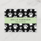 Niedliche, lustige und bezaubernde Visitenkarten mit weißen Pfoten auf schwarzem Hintergrund. Modernes Design, perfekt für Hundetrainer, Hundegroßhändler, Hundeschuhler, Haustierer, Tierhändler und Tierärzte.