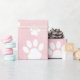 Niedliches, lustiges und bezauberndes Muster mit weißen Pfoten und rosa Wasserfarben. Modernes und trendiges Geschenk, perfekt für den Hundeliebhaber in Ihrem Leben.