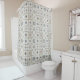 Duschvorhang mit neun (9) verschiedenen Fliesen im spanischen Stil in neutralen Farben, Mosaikmustern.