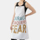 Dieses Design könnte auf einer Schürze für jeden verwendet werden, der will, an die Wichtigkeit von Mut erinnert zu werden. Die Phrase könnte in einem großen, fetten Schriftart gedruckt werden, oder sie könnte auf die Schürze bestickt werden. Es könnte auch mit anderen Designs kombiniert werden, wie dem Löwen, der Angst überwindet, oder einem Zitat über Mut.