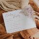 Freuen Sie sich auf die subtile Eleganz unserer boho pampas Gras RSVP Karte. Set vor einem geschmackvollen hellbraunen Hintergrund, die sanft blütigen tropischen Blume nahtlos vermischen, eine exquisite Touch von bohemianischem Flair. Ideal für Hochzeiten, Verlobungen oder jede raffinierte Ansammlung, diese Karte verlangt nicht nur eine Antwort, sie wird zu einem wertvollen Erlebnis. Genießen Sie die Schönheit gedämpfter Farbtöne und ließ Ihre Gäste, stilvoll zu reagieren.