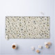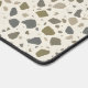 Ein nahtloses Terrazzo-Design mit verstreuten Pommes Frites in sanften Tönen aus Ton, Oliven, Beige und Schiefer auf einem hellen Hintergrund. Die verschiedenen Formen und Größen der Steinfragmente schaffen ein modernes, minimalistisches Ambiente, das sich perfekt für stilvolles Zuhause-Dekor, Modeakzente und zeitgenössische Schreibwaren eignet.