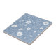 A beautiful hand-drawn floral pattern featuring delicate white wildflowers on a muted blue background.