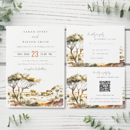 Muted Earthy Watercolor African Landscape Wedding Save The Date
