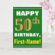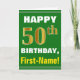 Dieses mögen einfache Geburtstag-themenorientierte Grußkarten-Ausrüstungsbeschreibungen ein warmer Geburtstagswunsch "GLÜCKLICHEN 50. GEBURTSTAG, Erst-Namen!" auf der Front im mutigen Text auf einem Grün färbte Hintergrund. Die Geburtstagszahl hat Imitat/nachgemachten Gold ähnlichen Farbtonauftritt. Der Name auf der Front kann besonders angefertigt werden. Die inneren Eigenschaften eine Geburtstagsmitteilung, die personalisiert sein kann. Eine Grußkarte so könnte eine Spaßweise sein, Geburtstagswünsche an jemand zu liefern, das ihren fünfzigsten Geburtstag feiert. [~Z0000279]