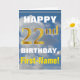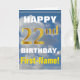 Dieses mögen einfache Geburtstag-themenorientierte Grußkarten-Ausrüstungsbeschreibungen ein warmer Geburtstagswunsch "GLÜCKLICHEN 22. GEBURTSTAG, Erst-Namen!" auf der Front im mutigen Text auf einem Hintergrund, der einen blauen Himmel mit den weißen und grauen Wolken darstellt. Die Geburtstagszahl hat Imitat/nachgemachten Gold ähnlichen Farbtonblick. Der Name auf der Front kann besonders angefertigt werden. Die inneren Eigenschaften eine Geburtstagsmitteilung, die personalisiert sein kann. Eine Grußkarte so könnte eine Spaßweise sein, Geburtstagswünsche an jemand zu liefern, das ihren zweiten Geburtstag zwanzig feiert. [~Z0000284]