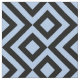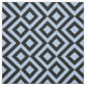 Stilvolles Gewebe kennzeichnet ein stilvolles, geometrisches hellblaues und schwarzes Windungsmuster. Hellblaue Diamanten mit schwarzen Grenzen werden durch Babyblauwindungen umgeben, die um sie angeln. Schwarze Zickzacke trennen die hellblauen Wege der Wicklung und die Ausgleichdiamanten.