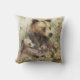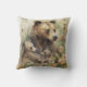 Dekorator werfen Kissen mit einem schönen Gemälde von einem Mutterbär und ihre beiden Jungen sitzen in einem Stück hübsch rosa Blume.