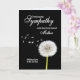 Schicken Sie Ihr Beileid nach dem Mutterverlust. Eine ruhige Leuchte Uhr, deren Samen sanft auf den Wind schwebend, Set vor einem dunklen Hintergrund. Die Karte ruft Frieden, Erinnerung und den natürlichen Fluss des Lebens hervor.