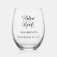 Dieses Weinglas wird mit einem Aufdruck 'Mutter der Braut' und Beispiel-Namen und -Datum angezeigt, so dass Sie den Beispieltext mit dieser Vorlage anpassen und ändern können.