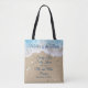 Das spielerische und lustige Sprichwort, Sandy Toes Salty Kisses bald Mr. Und Mrs., Akzent ist diese Bride Tote Tasche auf einem Hintergrund von blauen Ozeanwellen, Strand Sand, Muscheln, Seestern und Sand Dollars, die es ein vollkommenes Willkommensgeschenk für sie an Ihrem Strand, tropisch oder Hochzeit in Urlaubsort. Diese Tasche ist noch angepasst an das Hochzeitstag und das glückliche Paar neuen Nachnamen, sodass es sehr persönlich. Es ist einfach, auf die Mutter des Bräutigams zu wechseln; wenn jedoch Hilfe benötigt wird, kontaktieren Sie uns bitte unter prettyfancyinvites@gmail.com mit Ihrer Anfrage.