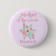 Ein toller Knopf für die Mutter des Bräutigams, Design mit einem schönen lila Hintergrund mit "Mutter des Bräutigams", geschrieben oben in pinkfarbenem lustigem Schriftart. Darunter befindet sich ein rosa und blaues Blume-Bouquet mit ihrem Namen personalisiert am unteren Ende. Bestellen Sie noch heute Ihre Bestellung! Kunstwerk erstellt von: AMBillustrations http://www.etsy.com/shop/AMBillustrations/