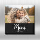 Mutter Foto-Magnet-Geschenk mit minimalistischem eleganten Schriftzug "Mom" und Gründungsjahr. Feiern Sie Mütter und werdende Mütter am Muttertag mit diesem einfachen, aber eleganten Magnet-Design, das einen Fotobereich zum Hinzufügen Ihres Lieblingsfotos von Mama bietet, mit dem Wort "Mom" in spielerischer weißer Schrift auf schwarzem Hintergrund, plus Platz, um es mit einem "Gründungsjahr" darunter zu personalisieren. Sie können "Mom" auch in Mommy, Mum, Mam, Mama oder einen anderen Namen ändern, den Sie bevorzugen.