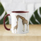 Ein süßes Paar Giraffen, eine Mutter und ihr Kalb, grüßen einander in einem zarten Moment. Diese Giraffenpaare sind Rothschild-Giraffen und würden ein großartiges Geschenk für einen Giraffenliebhaber, Liebhaber afrikanischer Tiere, oder einfach für jeden Tierliebhaber im Allgemeinen.