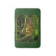 Zwei Weidelhirsche im Wald während der Frühjahrszeit. Eine weiße Tube liegt im grünen Gras neben einer Bucht und leckt ihr neugeborenes Gesicht, während das Sonnenlicht durch die Bäume strömt, um sie zu erwärmen. Realistische Kunstwerke aus einer originalen Ölmalerei von Crista S. Forest und Wildtieren.