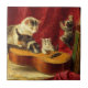Keramik Tile mit Henriëtte Ronner-Knip Ölmalerei Making Music (1900). Eine Mutterkatze sieht an, während ihre beiden Kätzchen mit einer Gitarre spielen, während ein anderes Kätzchen einen roten Vorhang aufklebt und sich ein anderes Kätzchen hinter Büchern versteckt. Ein wunderbares Geschenk für Katzenliebhaber und Romantiker.