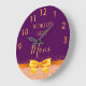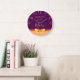 Elegant, klassisch, glamourös und feminin. Ein Imitat goldfarbener Bogen. Lila Hintergrund. Mit dem Text: Die beste Mama der Welt. Goldene Uhrennummern von 9 bis 3.