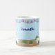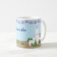 Feiern Sie die neue Mutter mit dieser niedlichen Mutter- und Babylama-Tasse. Die zwei Lamas stehen unter Succulents gegen einen Tupfenhintergrund des weisen Grüns, der durch eine festliche Fahne auf die Oberseite geschmückt wird. Groß für die neue Mutter eines Babys. Verfügbar mit zusammenpassenden Produkten.