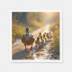 Eine weibliche Stockente führt auf einem sonnigen Weg mit Schlammkrümeln, die das warme Licht reflektieren, zu einer Entlammreihe