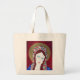 Diese Tasche hat ein Bild von einem gemischten Medienmosaik, das ich "Mutter weiß am besten" gemacht habe. Es ist eine Mischung aus pique assiette Mosaik (gebrochene Vintage China), Acrylfarbe und mehreren Schichten von bunten Knöpfen.