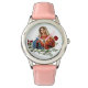 Kinderuhr aus Edelstahl mit rosa Lederarmband