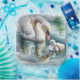 Ein anmutiger Schwan schlängelt sich hinab zu seinem fließenden Cygnet in ruhigen Gewässern.