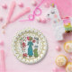 Niedliche Muttertagsplatte mit Mutter-Tochter-Duo mit goldenem Rahmen für Imitate. Die rote Rosen sind von Grünflächen umgeben.