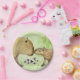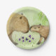 Eine Aquarellmalerei einer Capybara-Mutter, die mit ihrem Baby eine Nase rauscht, schmückt diese Teller!