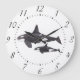 Vintage Darstellung eines Mütter- und Babyorca. Jachthafen, antiker Wasserfall zeichnend.