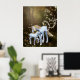 Ein wunderschönes Fantasy-Poster mit einem Paar Einhörnchen, einer Mutter und ihrem Baby, die in einem bezauberten Wald erstarrt. Diese wunderschönen weißen Einhörner haben goldene Hörner und hübsche Blume in ihren Manen und Schwänzen. Rund um sie herum sind Glitzern und Magie. Dieses wunderschöne Fantasieposter wäre eine ideale Wanddekoration oder ein Babyduschgeschenk für ein Kinderzimmer, ein Kinderzimmer, ein Teenagerzimmer und vieles mehr (zum Beispiel).