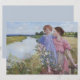 Dieses Design zeigt ein Gemälde der irischen Künstlerin Mildred Anne Butler (1858-1941). Es zeigt eine junge Frau mit einem rosa Kleid mit ihrer Tochter, die ein blaues Kleid trägt. Das Mädchen geht mit ihren bloßen Füßen an einer Ziegelwand entlang, während ihre Mutter an ihr festhält und sie unterstützt. Vor dem Mädchen wachsen einige wunderschöne wilde Rose; die Blume sind in verschiedenen Rosa- und Weißtönen gehalten. Andere Wildblumen wachsen auf der Wiese hinter Mutter und Tochter. Es gibt einen breiten Fluss, der durch die Wiese zieht, und in der Ferne gibt es einige Hügel und Bäume. Die ganze Szene spiegelt die Schönheit der Natur Irlands wider. Der Himmel ist klar, und nur ein paar weiße Wolken schwebten darüber. Das Originalwerk wurde 1919 von Mildred Anne Butler gemalt.
