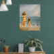 Mutter und Tochter gehen am Strand Poster